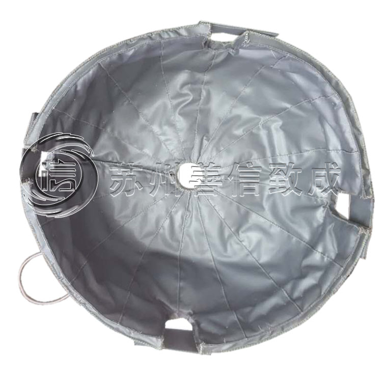 如图是适用于封头加热的工业电热毯,底部是出料孔位,侧面四个是避开支架的开孔,方便使用时安装,完全按照客户提供的尺寸生产制作,一般反应釜的侧面比较方便包裹,底部封头包裹比较有难度,而封头电热毯正好解决了这一个难题。实验表明,底部加热也比侧面加热的利用率更高,所以封头底部加热是比较理想的选择。客户只需要提供封头的外直径和高度,基本就可以确定封头电加热毯的外形,只需要连接配套的加热温控系统,就可以设定加热温度,使封头电热毯安全有效的工作了。